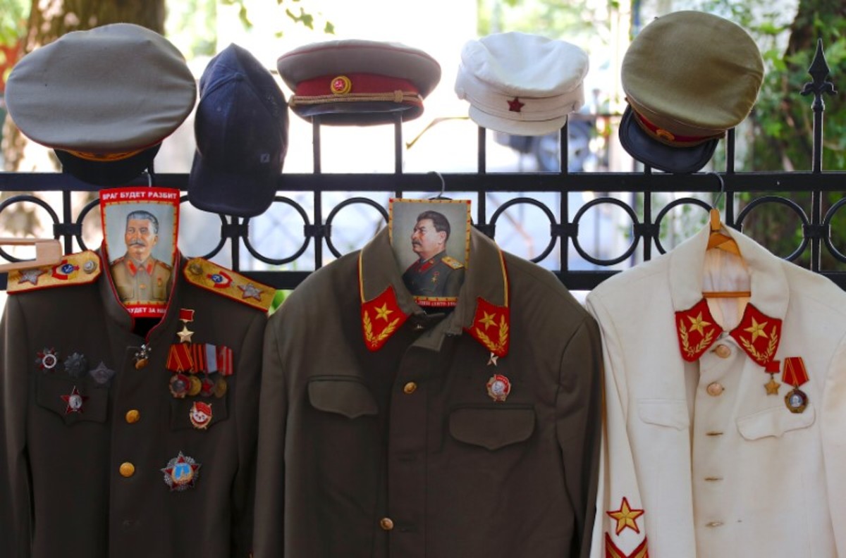 Russian military costumes for tourists to wear hang from a fence outside the entrance to Stalin's Bunker, a bunker complex built in 1942 as an alternative headquarters for the Soviet Union leader Joseph Stalin, in Samara, Russia, July 4, 2018. Picture taken July 4, 2018. REUTERS/David Gray