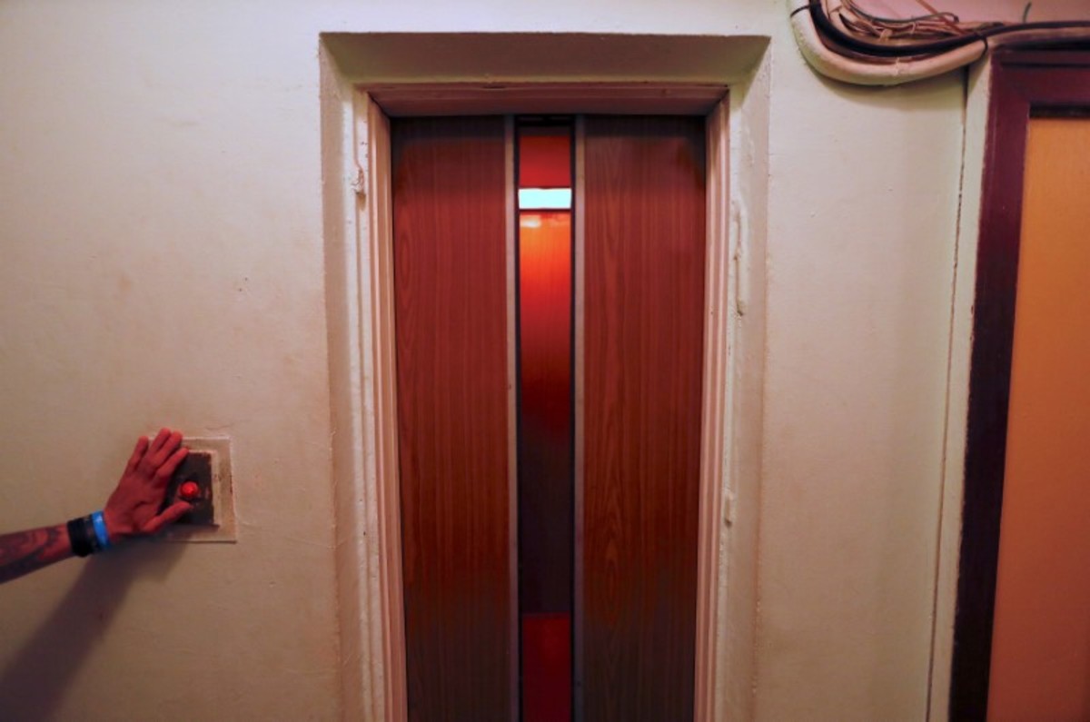 A guide touches a call button for a small elevator inside Stalin's Bunker, a bunker complex built in 1942 as an alternative headquarters for the Soviet Union leader Joseph Stalin, in Samara, Russia, July 4, 2018. Picture taken July 4, 2018. REUTERS/David Gray
