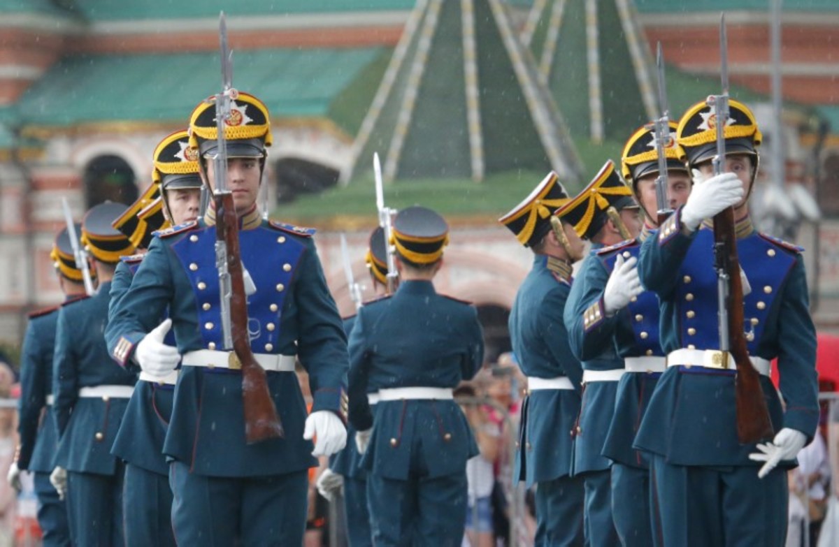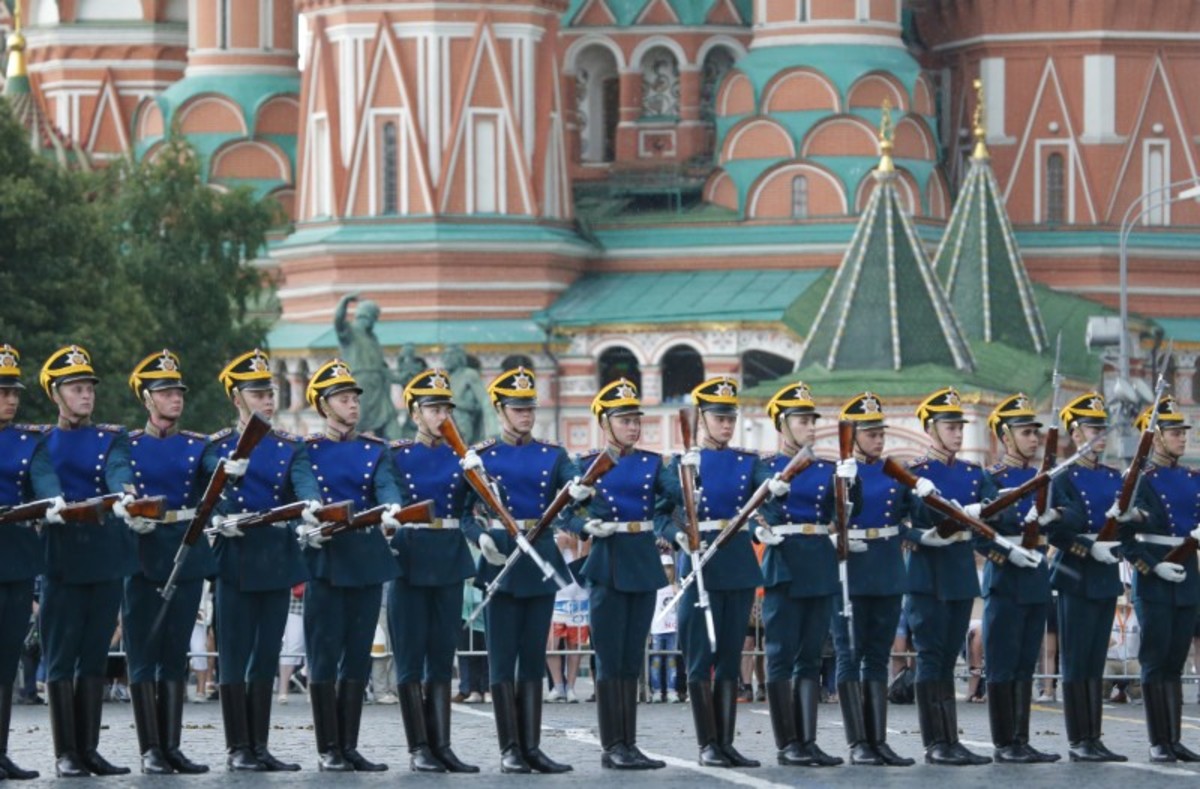 Members of the Guard of Honour of the Presidential Regiment perform during the Changing of the Guard ceremony in Red Square in Moscow, Russia June 30, 2018. REUTERS/Sergei KarpukhinMembers of the Guard of Honour of the Presidential Regiment perform during the Changing of the Guard ceremony in Red Square in Moscow, Russia June 30, 2018. REUTERS/Sergei KarpukhinMembers of the Guard of Honour of the Presidential Regiment perform during the Changing of the Guard ceremony in front of St. Basil's Cathedral in Red Square in Moscow, Russia June 30, 2018. REUTERS/Sergei KarpukhinMembers of the Cavalry Escort of the Presidential Regiment attend the Changing of the Guard ceremony in front of St. Basil's Cathedra in Red Square in Moscow, Russia June 30, 2018. REUTERS/Sergei KarpukhinMembers of the Guard of Honour of the Presidential Regiment attend the Changing of the Guard ceremony in front of St. Basil's Cathedra in Red Square in Moscow, Russia June 30, 2018. REUTERS/Sergei Karpukhin