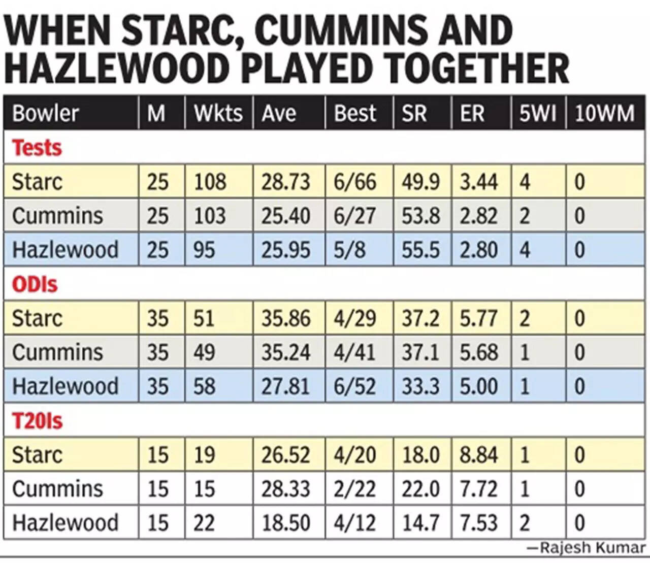 Starc, Hazlewood and Cummins are not only a testament to elite-level performance but also elite-level longevity, considering they play all three formats and bowl at speeds northwards of 140kmph.