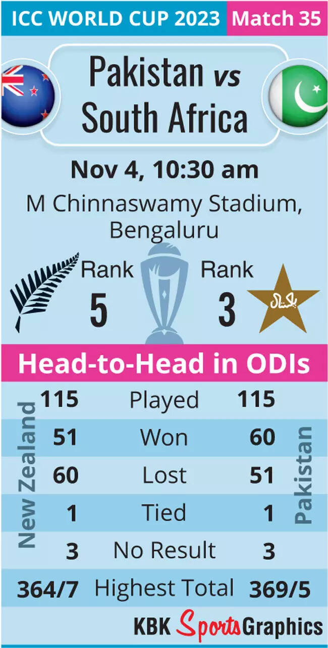 NEW DELHI: An injury-tormented New Zealand, further weakened by the exit of Matt Henry, seek resurgence while Pakistan need a continuation of their recent resurrection, and that subtext of desperation could turn their crucial World Cup match into a classic in Bengaluru on Saturday.