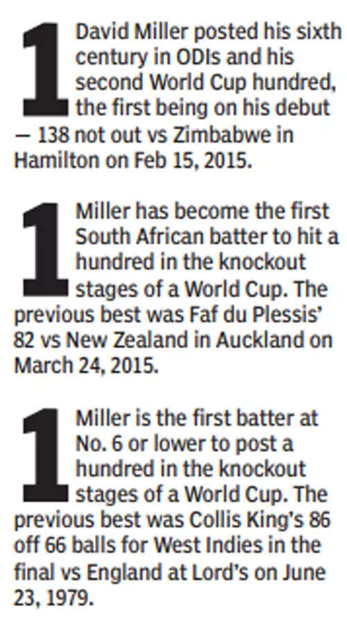 Hazlewood was clearly the bowling star with figures of 8-3-12-2. The interruption helped South Africa regroup as Miller and Klaasen combined for a 95-run partnership to put up the much-needed fight.