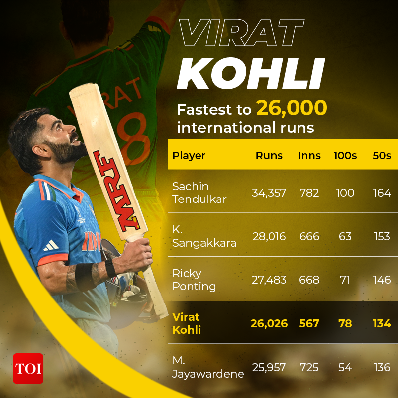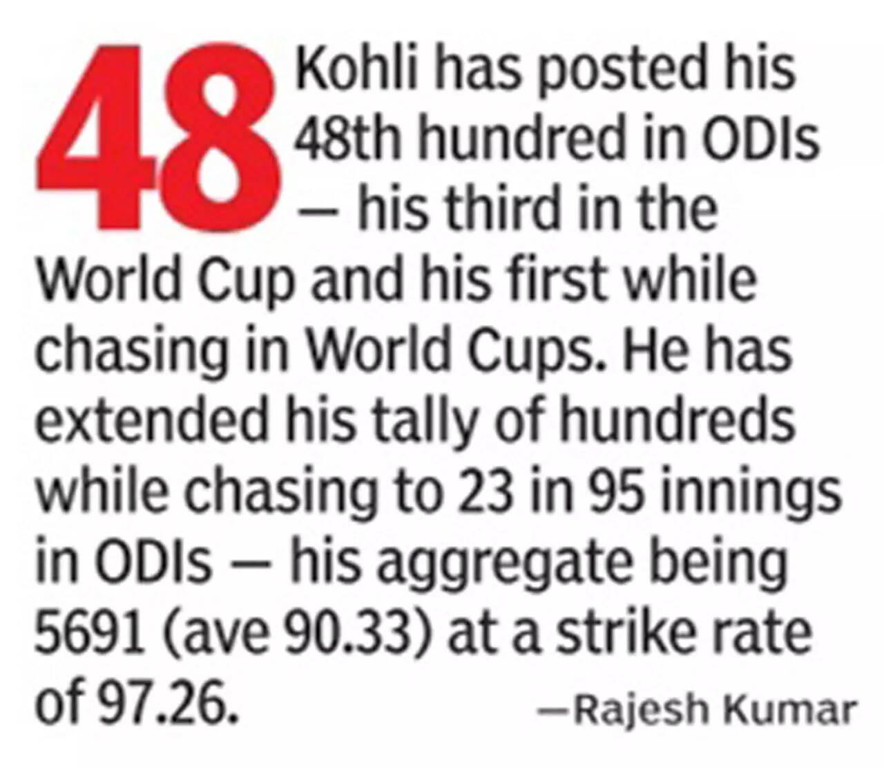 <p>Virat Kohli posted his 48th hundred in ODIs — his third in the World Cup and his first while chasing in World Cups - during India’s seven-wicket victory against Bangladesh in Pune on Thursday. </p>AFP3/10:Set to go past Sachin