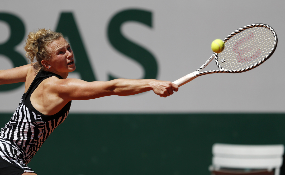 Tennis - French Open - Roland Garros, Paris, France - June 1, 2019. Katerina Siniakova of the Czech Republic in action during her third round match against Japan's Naomi Osaka. REUTERS/Vincent Kessler