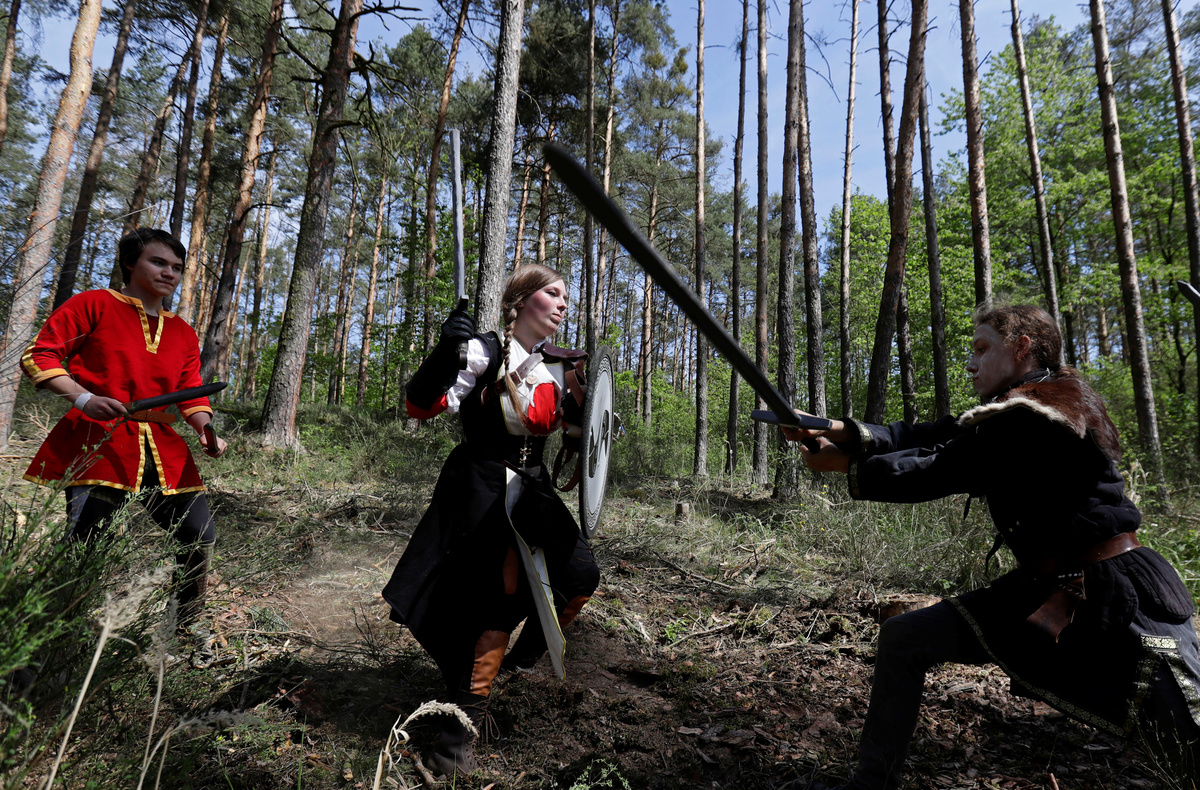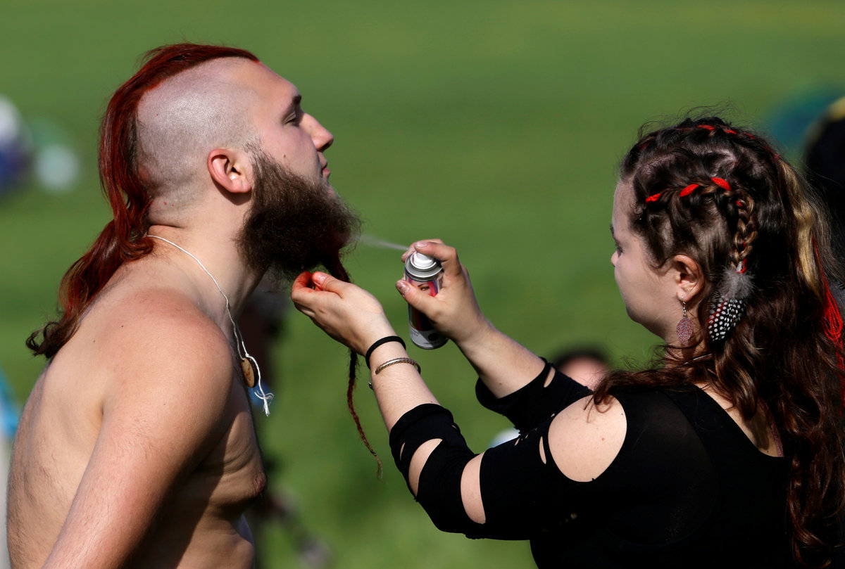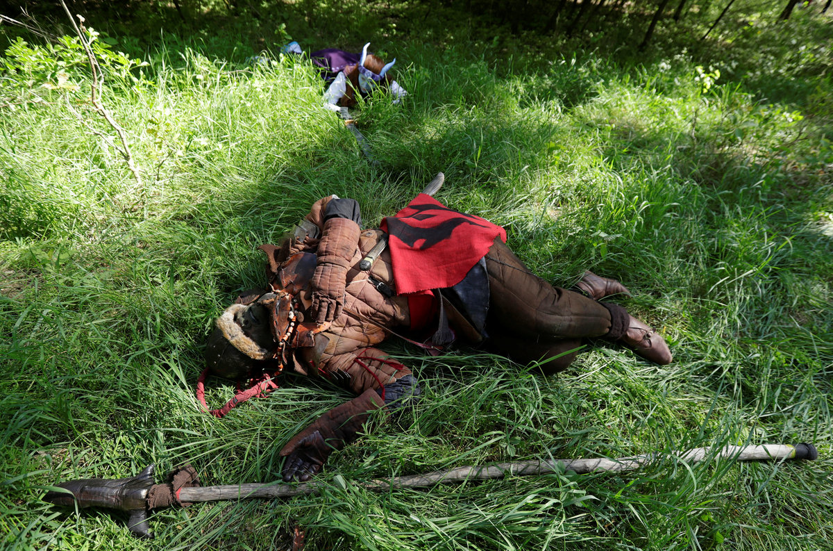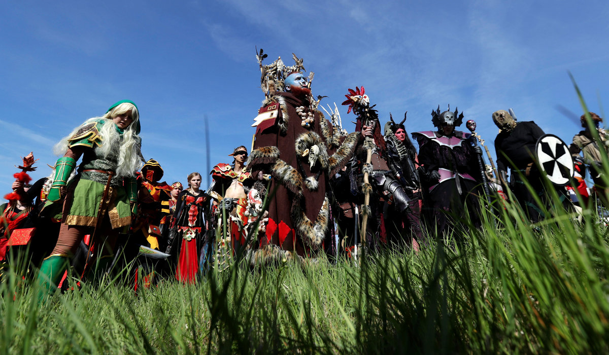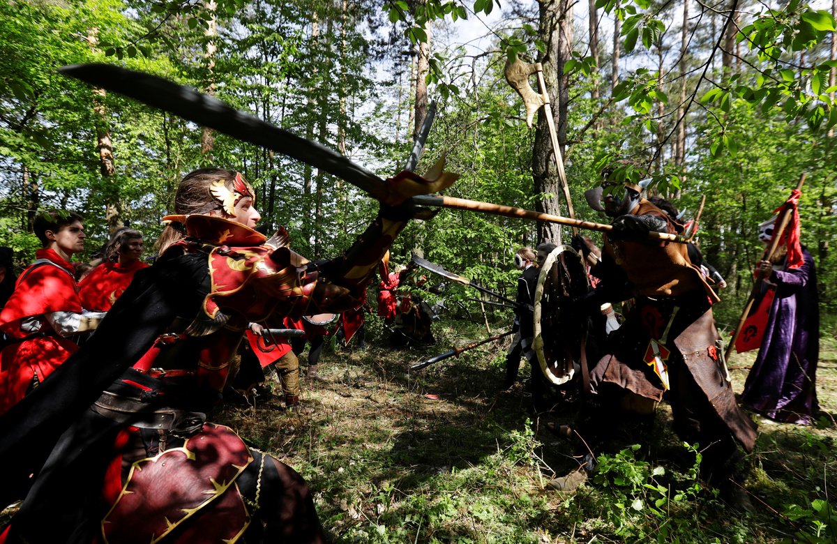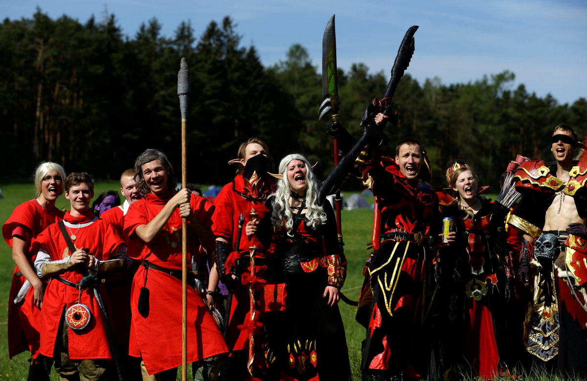 Vojtech Ruzicka (C) and Zuzana Vondrakova (L) both dressed as characters from the computer game "World of Warcraft" stand on a field before a battle near the town of Kamyk nad Vltavou, Czech Republic, April 28, 2018. Picture taken April 28, 2018. REUTERS/David W CernyZuzana Vondrakova, dressed as a character from the computer game "World of Warcraft", stands in a forest near the town of Kamyk nad Vltavou, Czech Republic, April 28, 2018. Picture taken April 28, 2018. REUTERS/David W CernyVojtech Ruzicka gets his beard sprayed with a color as he prepares to play a character from the computer game "World of Warcraft" near the town of Kamyk nad Vltavou, Czech Republic, April 28, 2018. Picture taken April 28, 2018. REUTERS/David W CernyPeople dressed as characters from the computer game "World of Warcraft" shout before a battle near the town of Kamyk nad Vltavou, Czech Republic, April 28, 2018. Picture taken April 28, 2018. REUTERS/David W CernyPeople dressed as characters from the computer game "World of Warcraft" walk across a field near the town of Kamyk nad Vltavou, Czech Republic, April 28, 2018. Picture taken April 28, 2018. REUTERS/David W Cerny A man dressed as a character from the computer game "World of Warcraft" stands on a field near the town of Kamyk nad Vltavou, Czech Republic, April 28, 2018. Picture taken April 28, 2018. REUTERS/David W Cerny People dressed as characters from the computer game "World of Warcraft" stand in a forest near the town of Kamyk nad Vltavou, Czech Republic, April 28, 2018. Picture taken April 28, 2018. REUTERS/David W CernyPeople dressed as characters from the computer game "World of Warcraft" fight during a battle near the town of Kamyk nad Vltavou, Czech Republic, April 28, 2018. Picture taken April 28, 2018. REUTERS/David W CernyPeople dressed as characters from the computer game "World of Warcraft" walk across a field near the town of Kamyk nad Vltavou, Czech Republic, April 28, 2018. Picture taken April 28, 2018. REUTERS/David W CernyPeople dressed as characters from the computer game "World of Warcraft" fight during a battle near the town of Kamyk nad Vltavou, Czech Republic, April 28, 2018. Picture taken April 28, 2018. REUTERS/David W CernyPeople dressed as characters from the computer game "World of Warcraft" lie on the ground during a battle near the town of Kamyk nad Vltavou, Czech Republic, April 28, 2018. Picture taken April 28, 2018. REUTERS/David W CernyA man dressed as a character from the computer game "World of Warcraft" walks through a forest near the town of Kamyk nad Vltavou, Czech Republic, April 28, 2018. Picture taken April 28, 2018. REUTERS/David W CernyPeople dressed as characters from the computer game "World of Warcraft" walk across a field near the town of Kamyk nad Vltavou, Czech Republic, April 28, 2018. Picture taken April 28, 2018. REUTERS/David W CernyA woman dressed as a character from the computer game "World of Warcraft" prepares for a battle inside a tent near the town of Kamyk nad Vltavou, Czech Republic, April 28, 2018. Picture taken April 28, 2018. REUTERS/David W Cerny