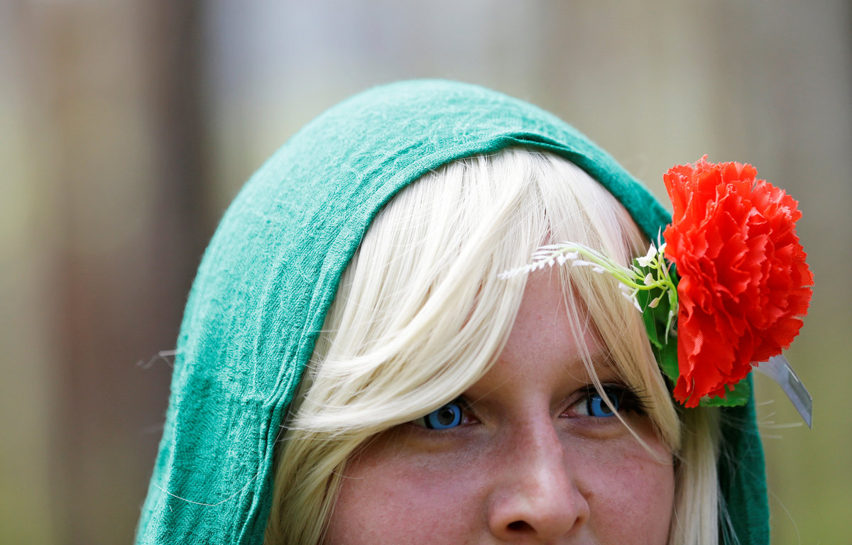 A woman dressed as a character from the computer game "World of Warcraft" walks through a forest near the town of Kamyk nad Vltavou, Czech Republic, April 28, 2018. Picture taken April 28, 2018. REUTERS/David W Cerny