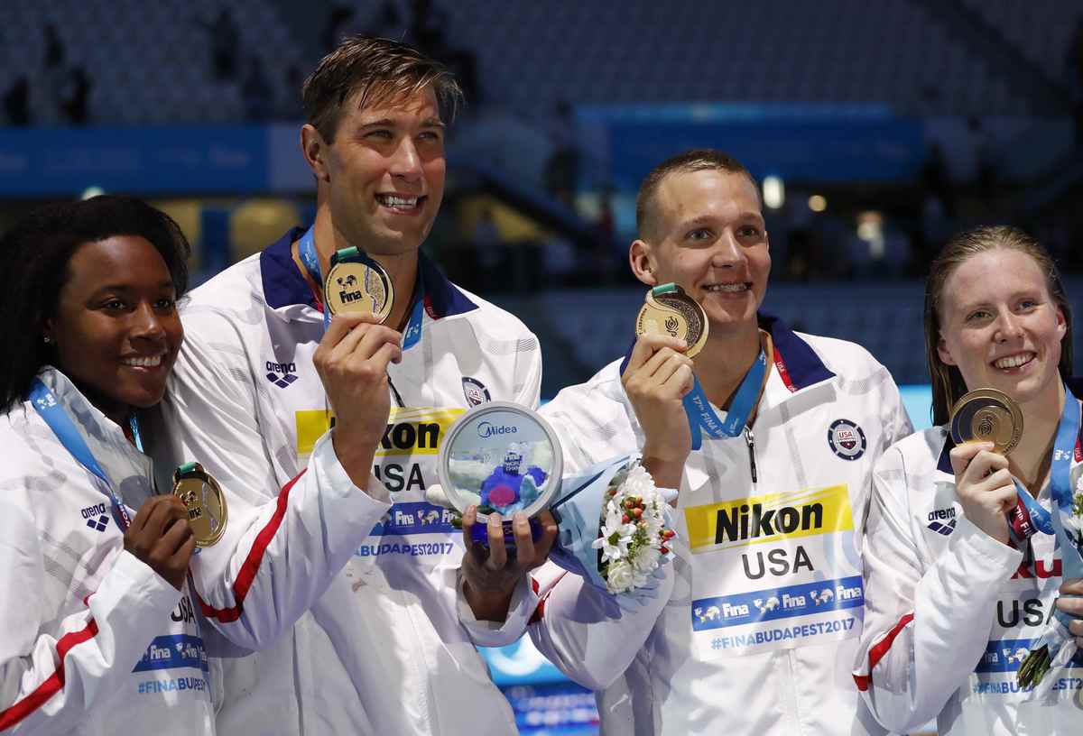 In the mixed 4x100m medley relay, the United States set their second world record of the day to take gold, with defending champions Britain finishing fifth.