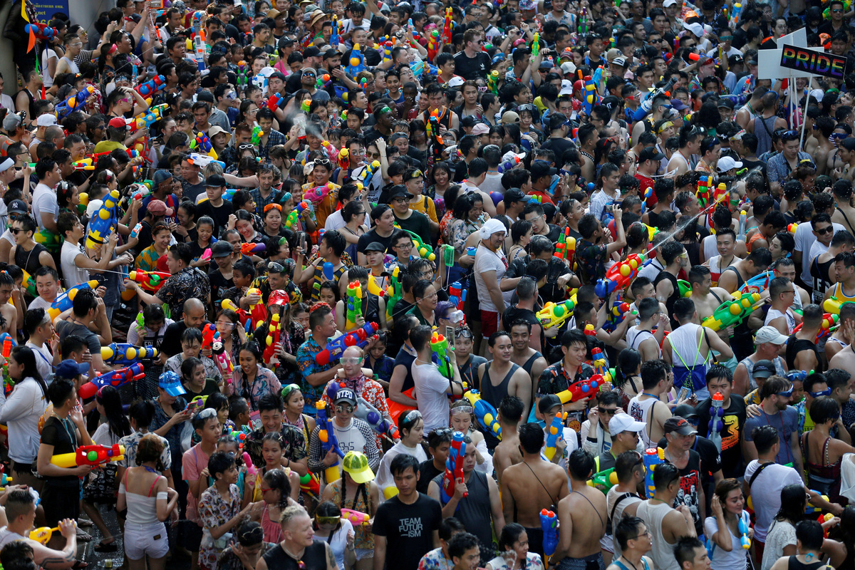 Thailand celebrates Songkran, its traditional new year, from April 13 to 15, during which revelers splash water on each other under the scorching sun.