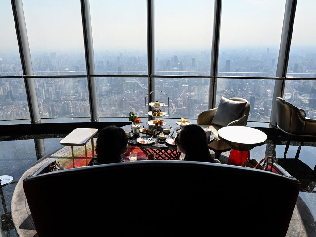 The hotel, whose opening was delayed due to Covid, offers a bird’s eye view across Shanghai including of the Yangtze River which flows through the city.