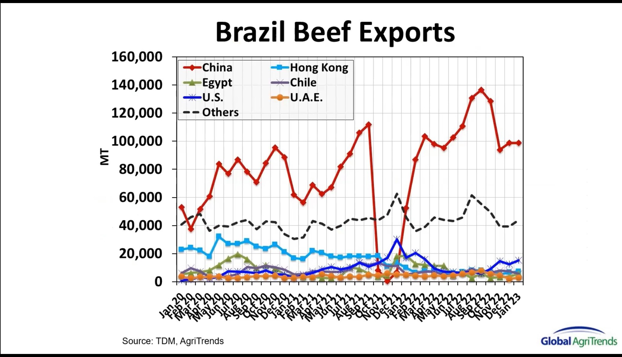 "If China is suddenly not receiving meat out of Brazil, we could see a quick response from China for Australian product, which could in turn, see Japan and Korea looking for Australian product as well."