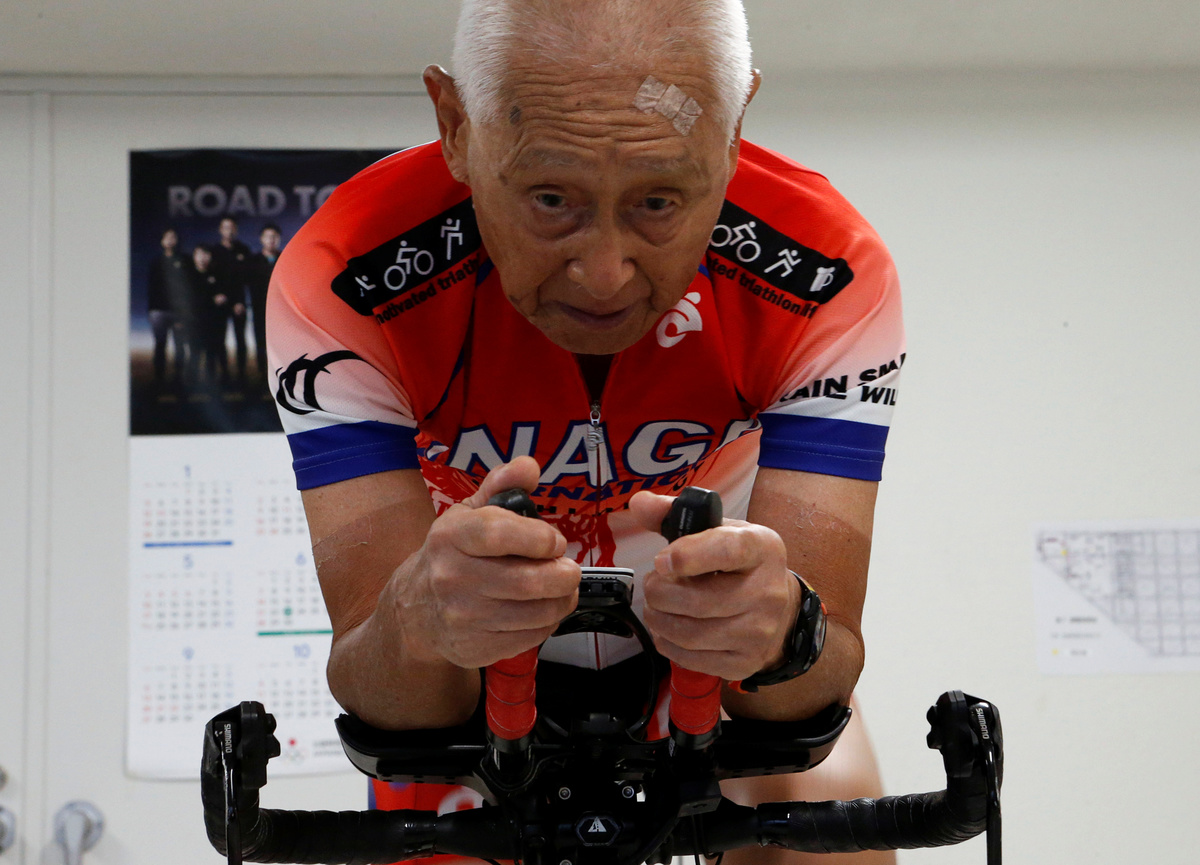 Hiromu Inada, 87, already has a certificate on his wall that confirms his status as the world's oldest Ironman, but the Japanese man is still pounding away on his training bike and hopes to continue competing into his 90s.