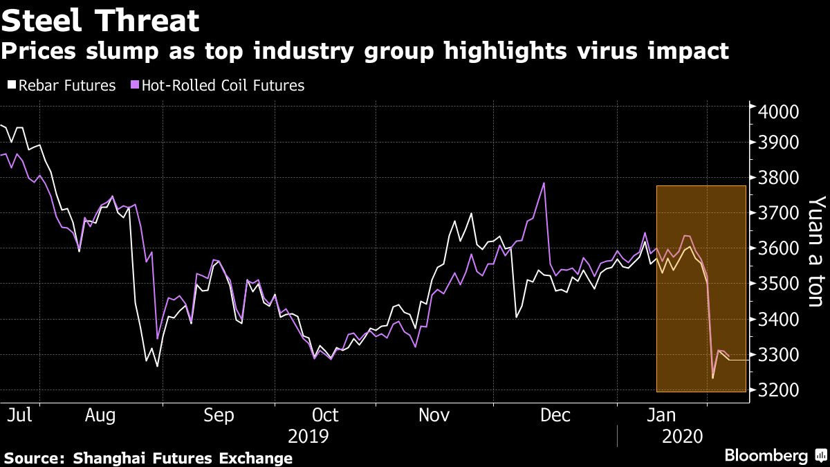 Commodities have been rocked by China’s health crisis, which has killed hundreds, sickened thousands, and hurt the outlook for raw material demand as company activities are suspended and transport barred. The country is the top buyer of iron ore from shippers including BHP Group, Rio Tinto Group and Vale SA. Conditions in China’s steel industry -- which accounts for more than half global output -- set the tone for producers and users around the world.