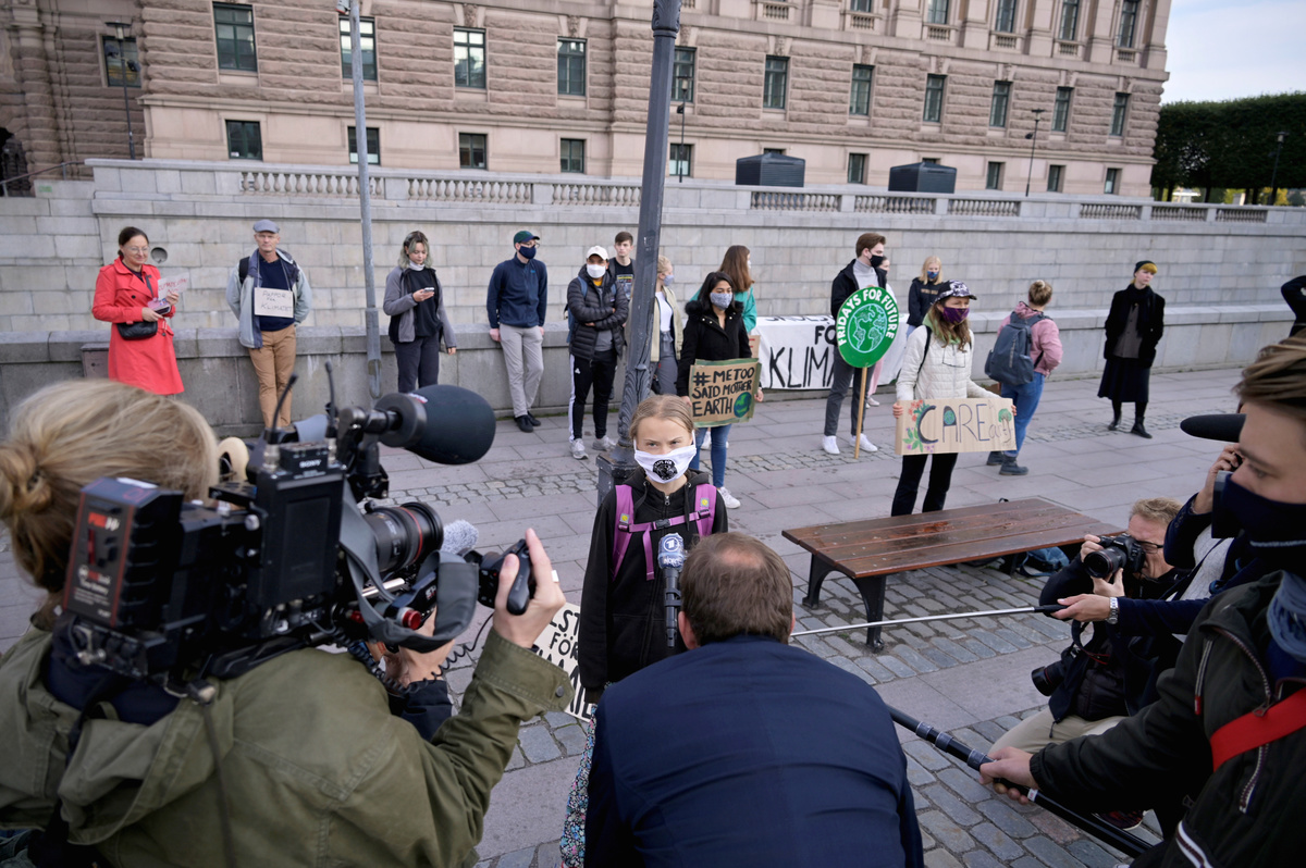 In Stockholm, Thunberg and a handful of members of her group, Fridays for Future, assembled outside parliament.