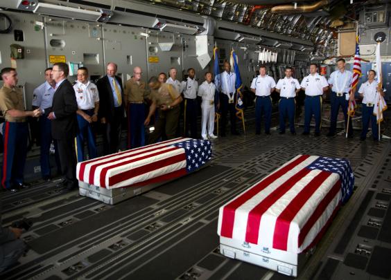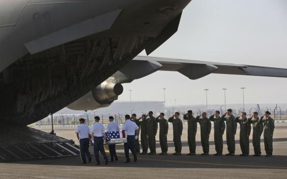 US Defence Secretary Ash Carter, who has been traveling in India, watched as taps was played and the remains were placed in the caskets and loaded onto a C-17 aircraft for the flight to Hawaii.