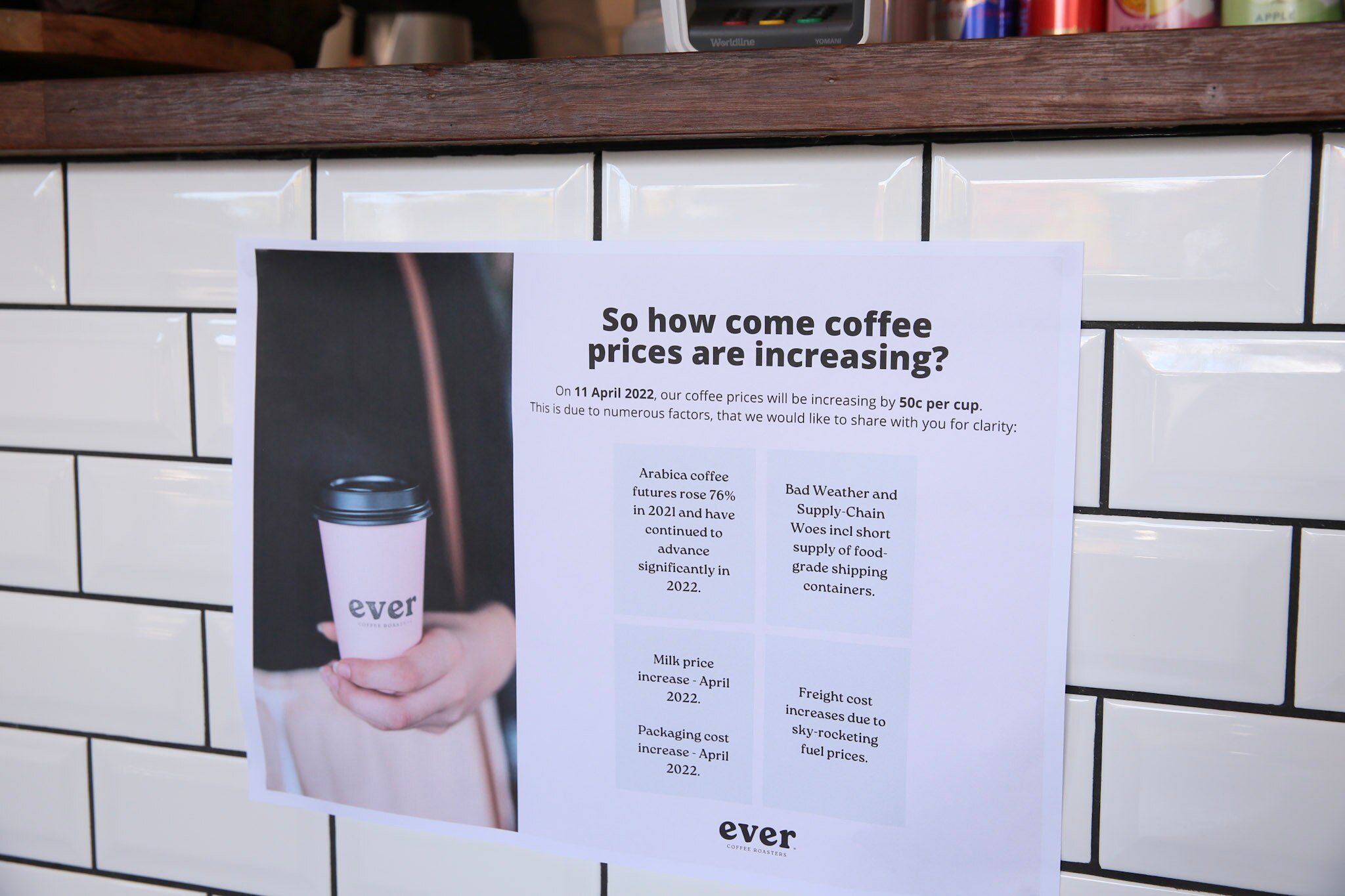 That is the question consumers need to consider as the cost of everything from green coffee beans to milk, containers and petrol has gone up.