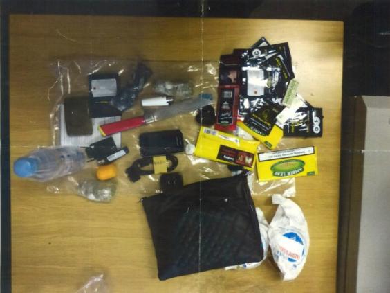 The bag was found inside the London prison containing several banned items, including a five-inch blade.