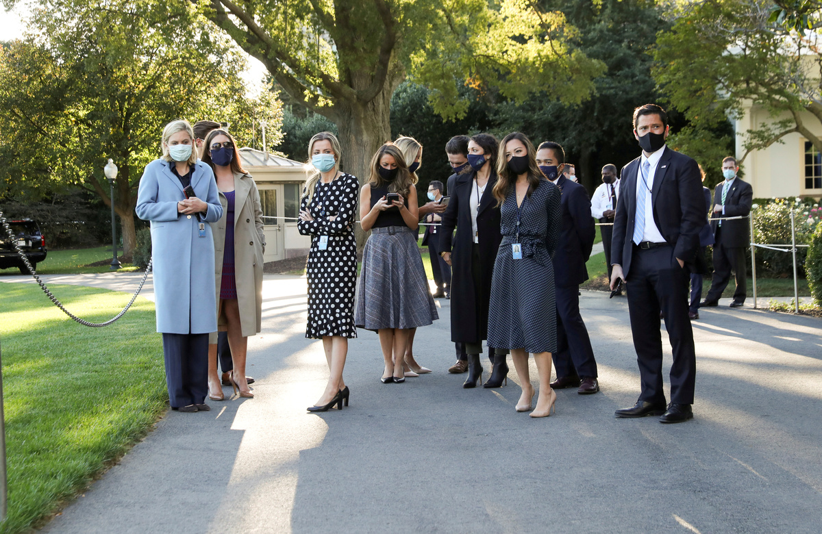 On Friday, the sight of more White House staff than usual donning masks, including press secretary McEnany in the evening, was taken as a sign that coronavirus risks were being taken more seriously. Communications adviser Hope Hicks and first lady Melania Trump also tested positive.