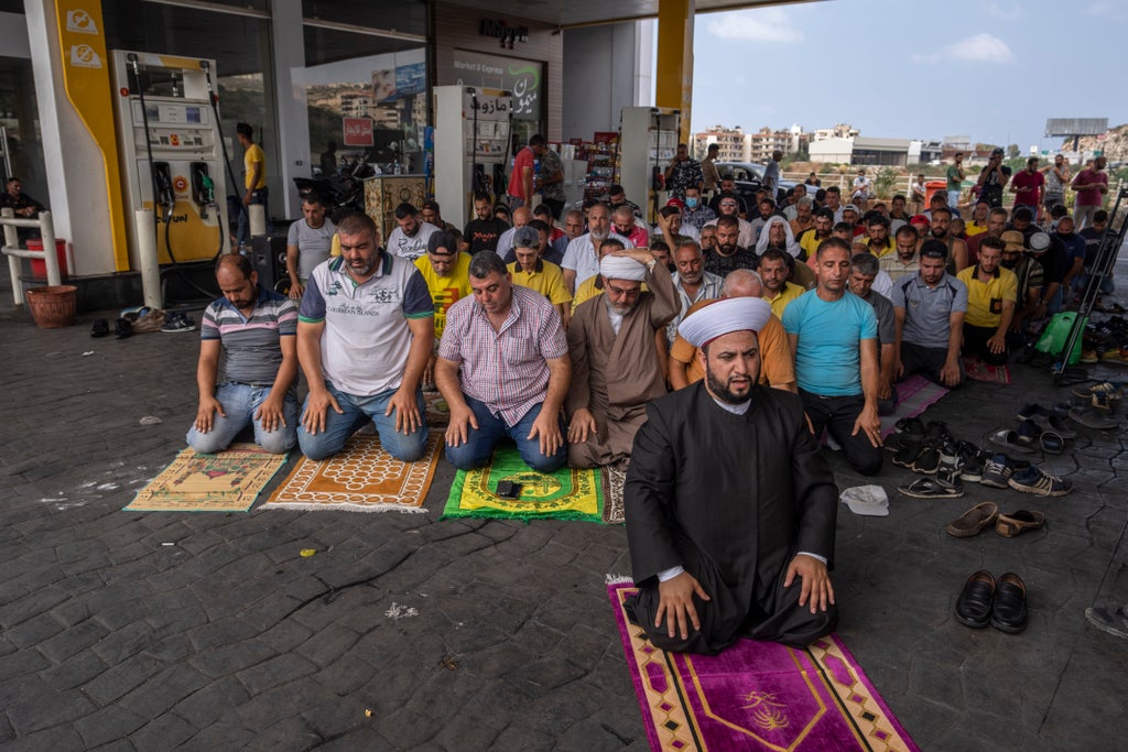 Sheikh Ali al-Hussein led the session to highlight the hardship suffered by people who could not leave their spots in line for gas during the worst economic crisis in Lebanon’s history. So, he says, he brought the mosque to the people, who were queued up for five kilometers (three miles) near a station in Jiyeh.