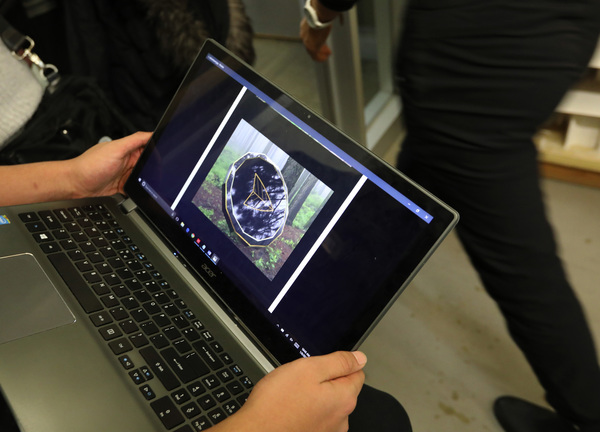 Laptop in hand, Tay Aras showed original industrial designs. One could be called a modern compass pointing people to their destination. It has a slick, futuristic design. He also showed his take on hiking boots with a personal flourish.