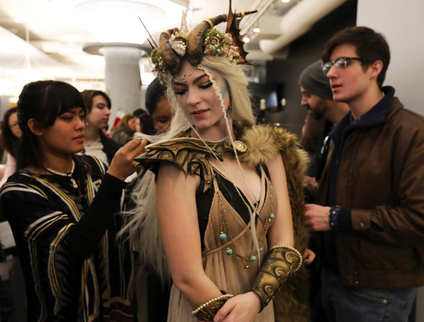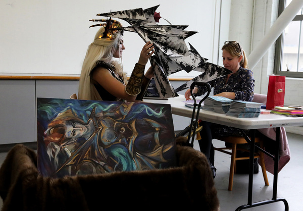 Sophie Hamilton, of Duvall, arrived with a faux-fur-lined wagon filled with a painting, a sculpture and a sword. But her attire was an original creation of her birth sign _ Capricorn.