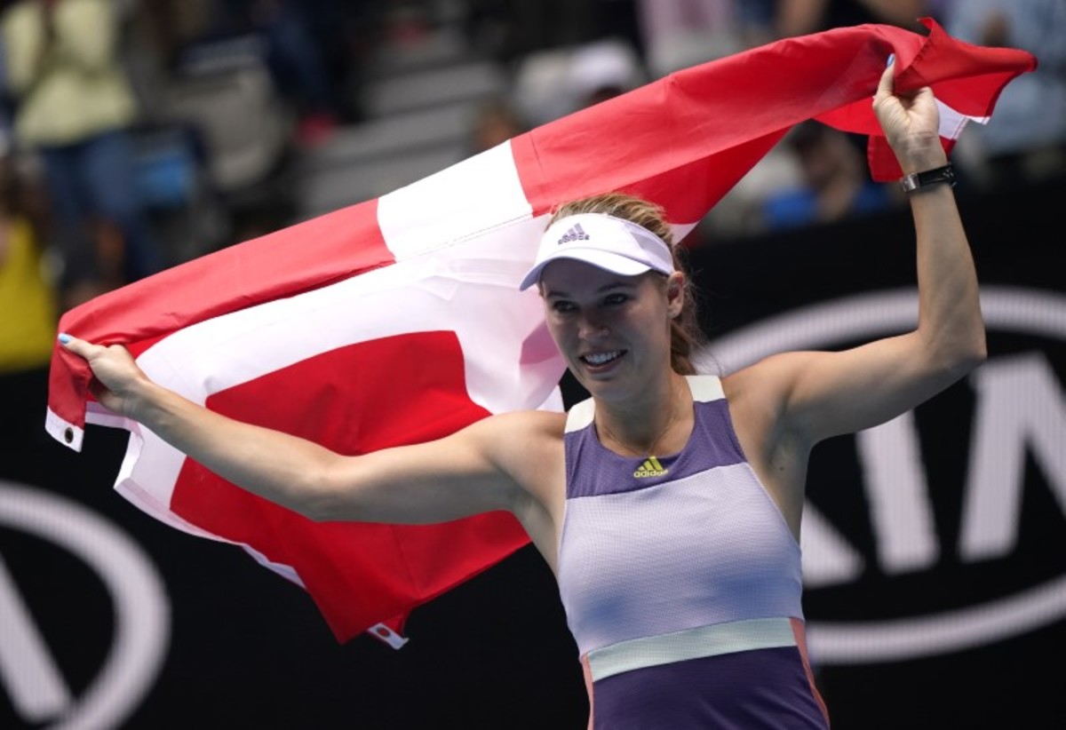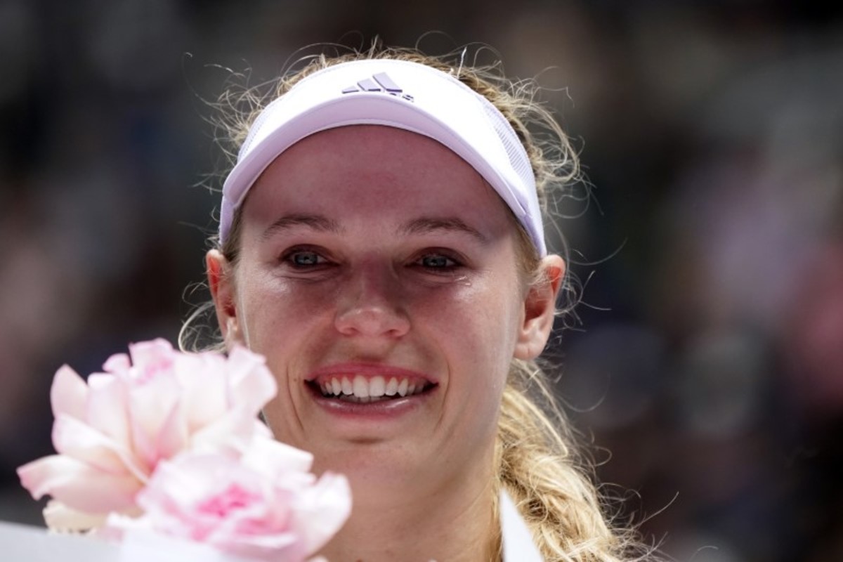 With the entire crowd on its feet applauding, Wozniacki completed her final afternoon on court by performing a lap of honour draped in the Danish flag.
