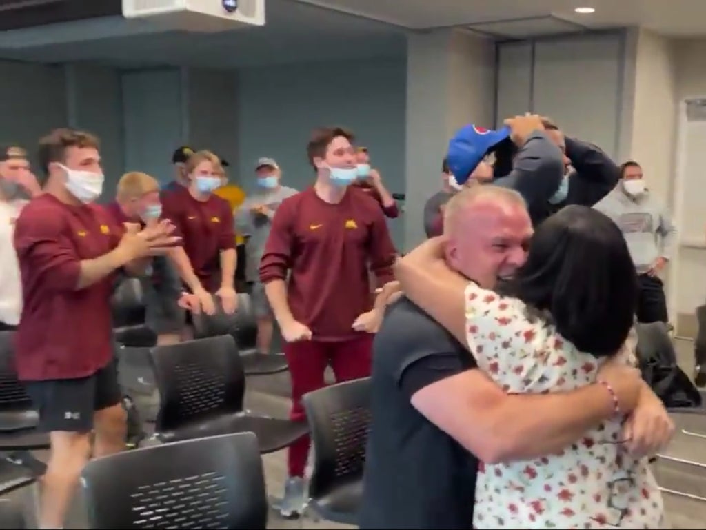 Gable Steveson’s family and friends were seen going wild after he defeated his Georgian opponent in the freestyle heavyweight final at Tokyo 2020 to win his first Olympic gold.
