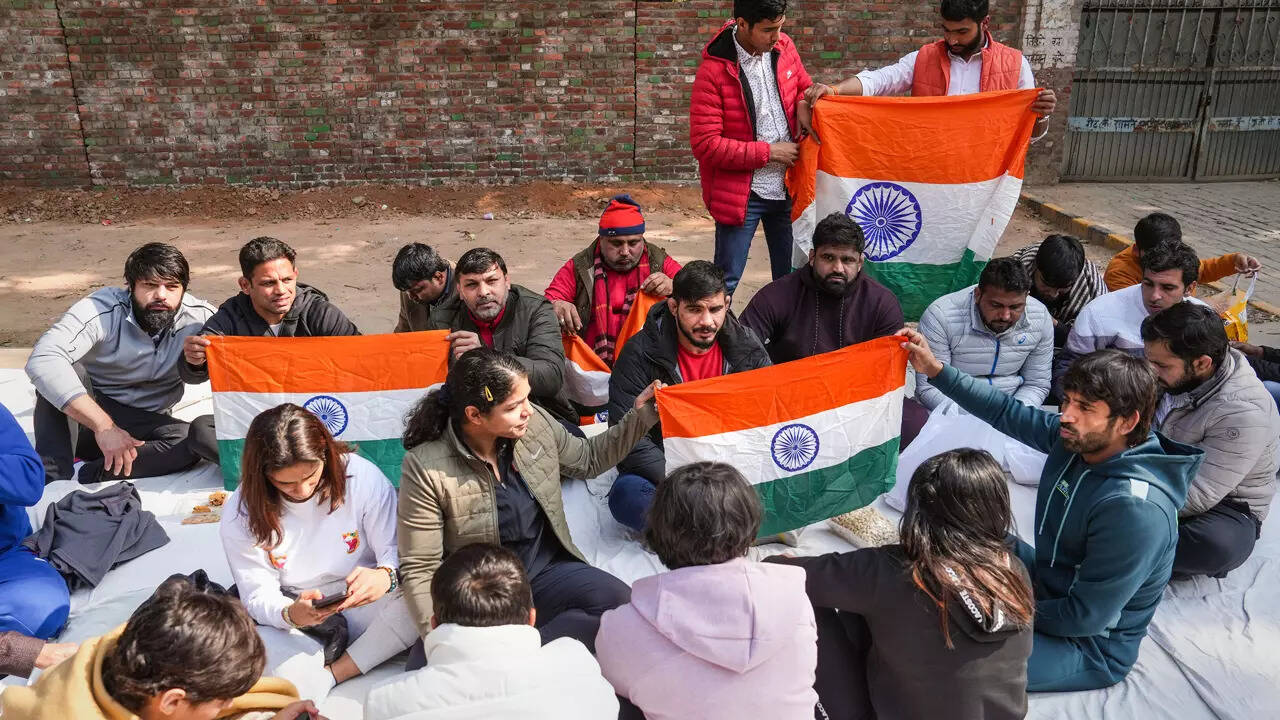 NEW DELHI: In an unprecedented move, the country's top wrestlers, including Tokyo Olympics bronze medallist Bajrang Punia and world championship medallist Vinesh Phogat, staged a protest against the "dictatorship" of national federation president Brij Bhushan Sharan Singh on Wednesday.