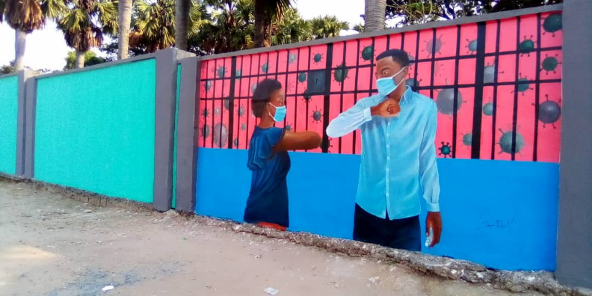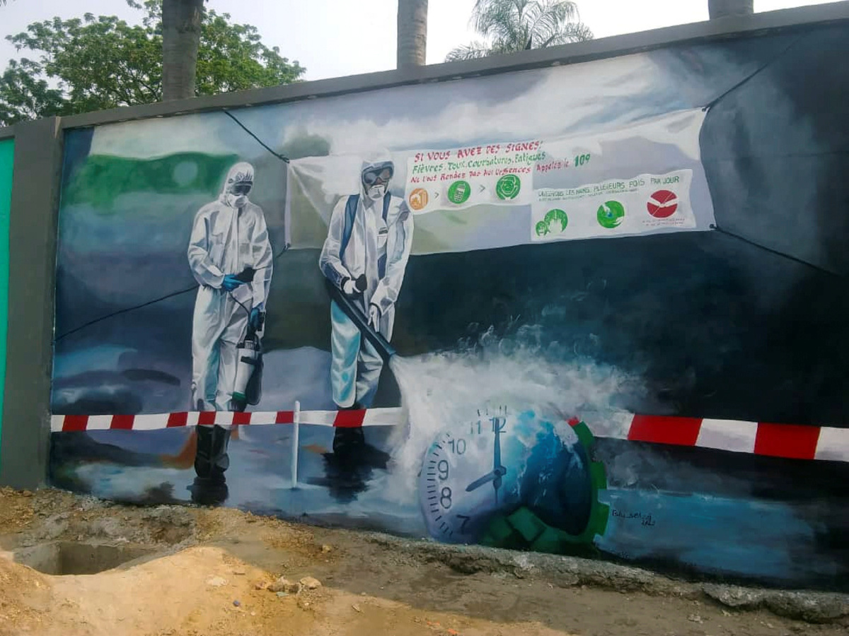 In central Kinshasa, freshly painted murals show traditional idols wearing medical masks or applying hand sanitiser, part of an art initiative to counter public disbelief in the face of the coronavirus pandemic sweeping Democratic Republic of Congo.