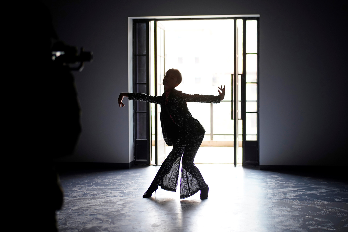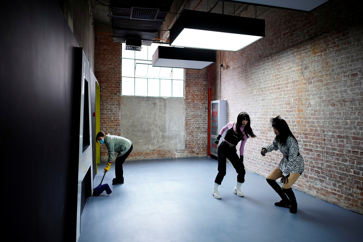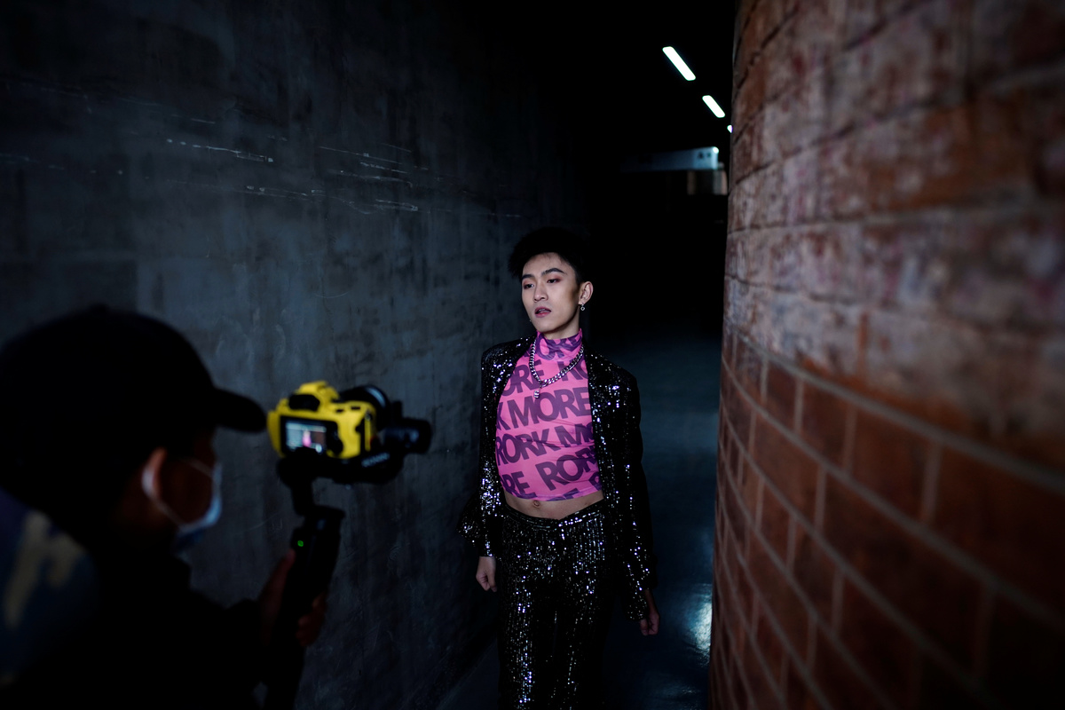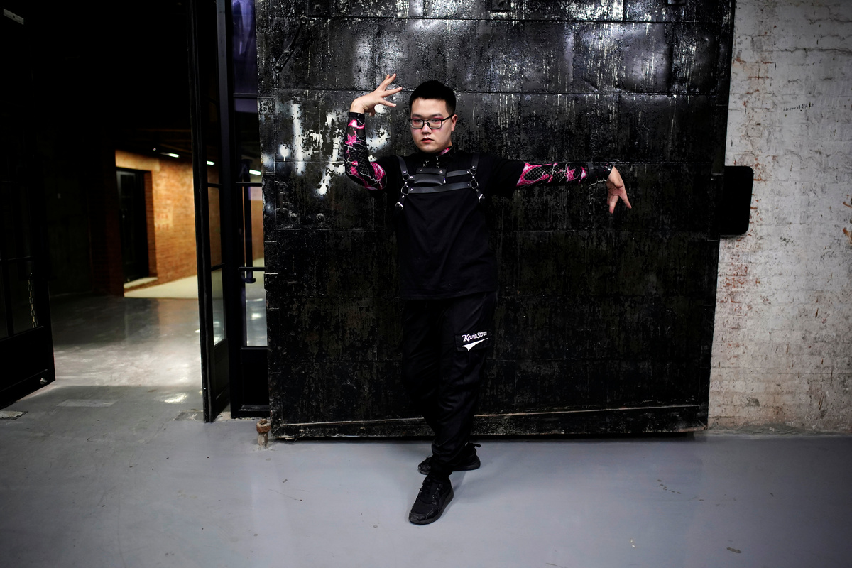 In a converted factory building in downtown Wuhan, 22-year-old Xiong Feng, who goes by the name Daiki, struts and spins in a black sequined full-body suit and stiletto boots.