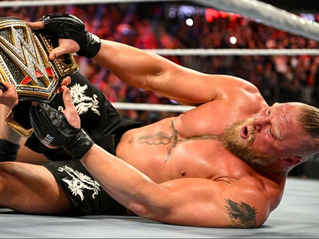 Those plans had been thrown into chaos after the company confirmed Reigns’ absence – swiftly re-writing the show to include Lesnar in the WWE title bout instead.