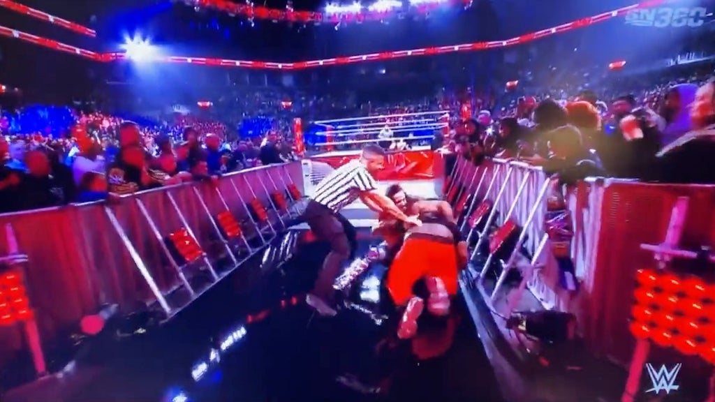 The dramatic scenes unfolded during an episode of WWE’s Monday Night Raw show in Brooklyn, with the moment even captured on screen before cameras quickly cut away.