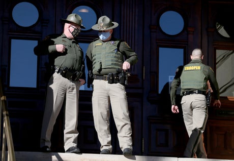 While other states such as Utah made high-profile increases to security after an FBI warning of “armed protests” in all 50 states that week, security in Cheyenne appeared light. In fact, the Guard troops weren't far away at an “undisclosed location," Pearlman said.