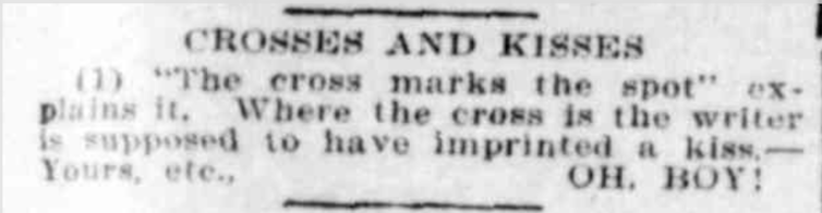 One correspondent proposed the X resembled the lips of two people kissing. Another thought “the cross marks the spot” where the author had imprinted a kiss for the recipient.