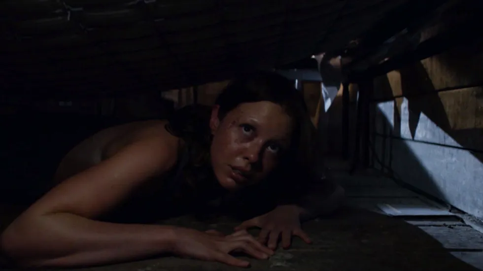 Once the gang arrives at the farm, they’re greeted with surly suspicion by crusty ol’ Howard (Stephen Ure), who looks to be about 100 years old and answers the door waving a shotgun. Staring from an upstairs window in classic horror movie fashion is Howard’s wife Pearl. And here’s the thing about Pearl: She’s also played by Mia Goth, who is virtually unrecognizable beneath some truly impressive makeup and prosthetics, which has us wondering if there’s going to be some sort of supernatural element to the proceedings, and I’m not spoiling that either way for ya.
