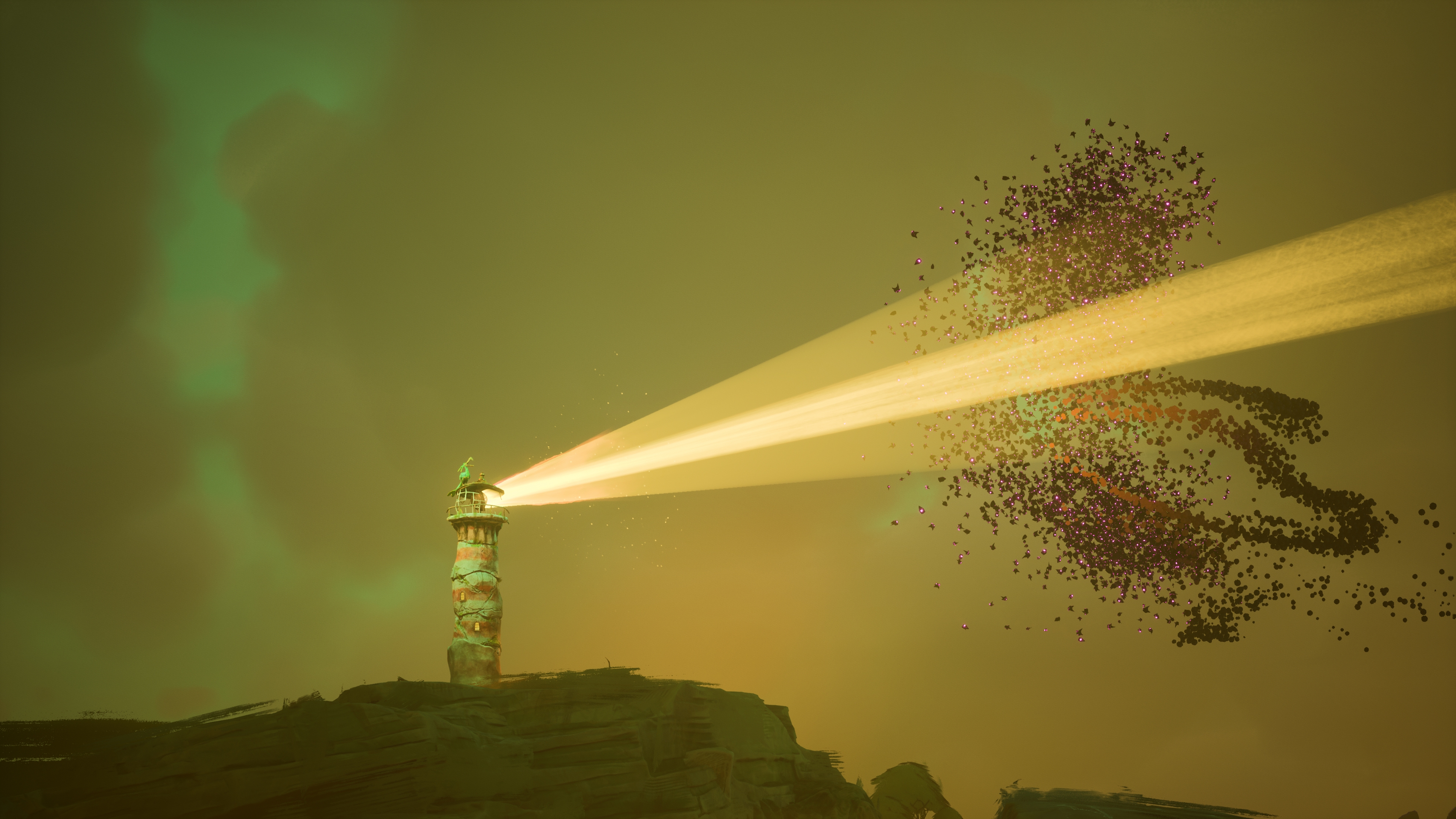 The story of Keeper is told entirely through the world itself, either through the strange life occupying its regions, the mysterious ruins of some long-gone civilization, crumbled statues hinting at a disastrous history, the constant threat of an enigmatic decay seeping through every crack, even your own inscrutable actions as a sentient lighthouse with a clearly set goal that may not be clear to you at all.