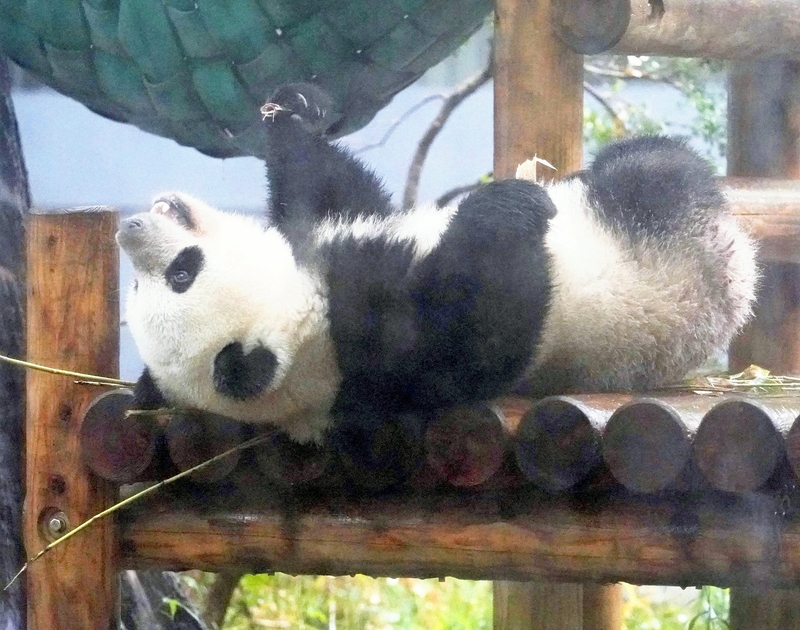 The panda weighed 61.6 kilograms as of last Wednesday and eats bamboo and steamed buns made from rice and corn powder, the same diet as adult pandas.