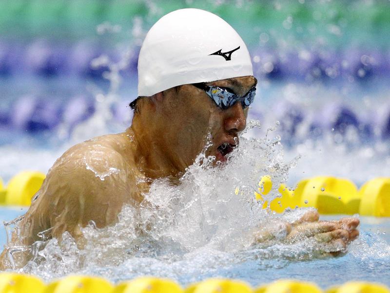 Paralympic swimmer Naohide Yamaguchi competes in the men's 50-meter breaststroke at the New Year national swimming competition for persons with intellectual disabilities in Chiba Prefecture in January.
