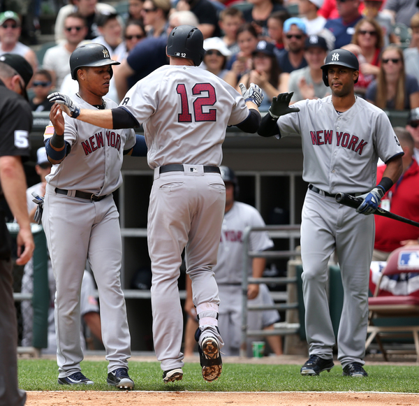 The Yankees squandered a chance to retake the lead in the fourth. Brian McCann singled and went to third on Castro's double down the leftfield line. McCann stayed at third when Gregorius, who had a rough day in the field with a career-high three errors, grounded to first and, after Headley walked on four pitches to load the bases, Aaron Hicks flied to right.