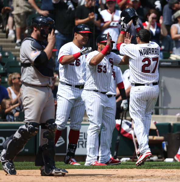 The White Sox (43-40) had 13 hits, three by Todd Frazier, who reached base in all five plate appearances.