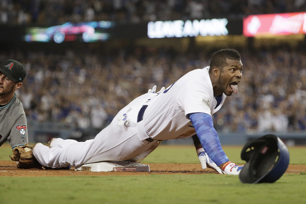 Conceived in a moment of exuberance after a first-round triple, it has become a signature gesture of this postseason. The television broadcasts showed Puig wagging his tongue in the dugout ad nauseam. After a triple in the NLCS, straight-laced Chris Taylor lolled his tongue. On the mound at Wrigley Field after Game 5, the Dodgers gathered for a team picture with their tongues out.