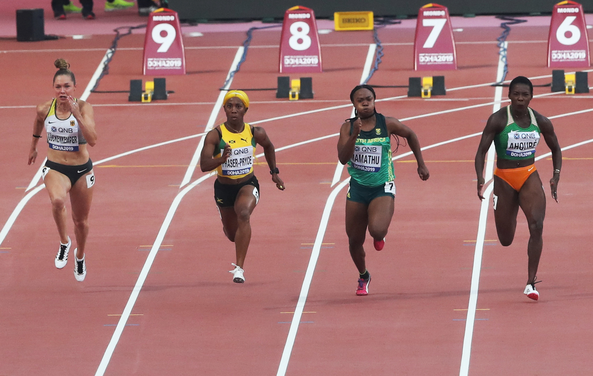 "The hair is the sunshine," said Fraser-Pryce, Olympic champion in 2008 and 2012. "It's definitely a wonderful feeling to be here in Doha.