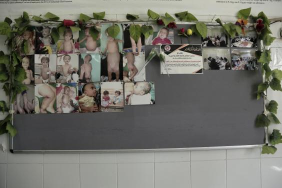 Her one-year-old daughter, Amal, has been diagnosed with acute malnutrition and can no longer stand up.