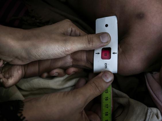 Fadl’s last visit to the hospital was on 29 November. At eight months old, he weighed 2.9kg, a third of the normal weight. The circumference of his upper arm, a common measure for malnutrition, was seven centimetres , less than three inches. That indicated severe acute malnutrition.