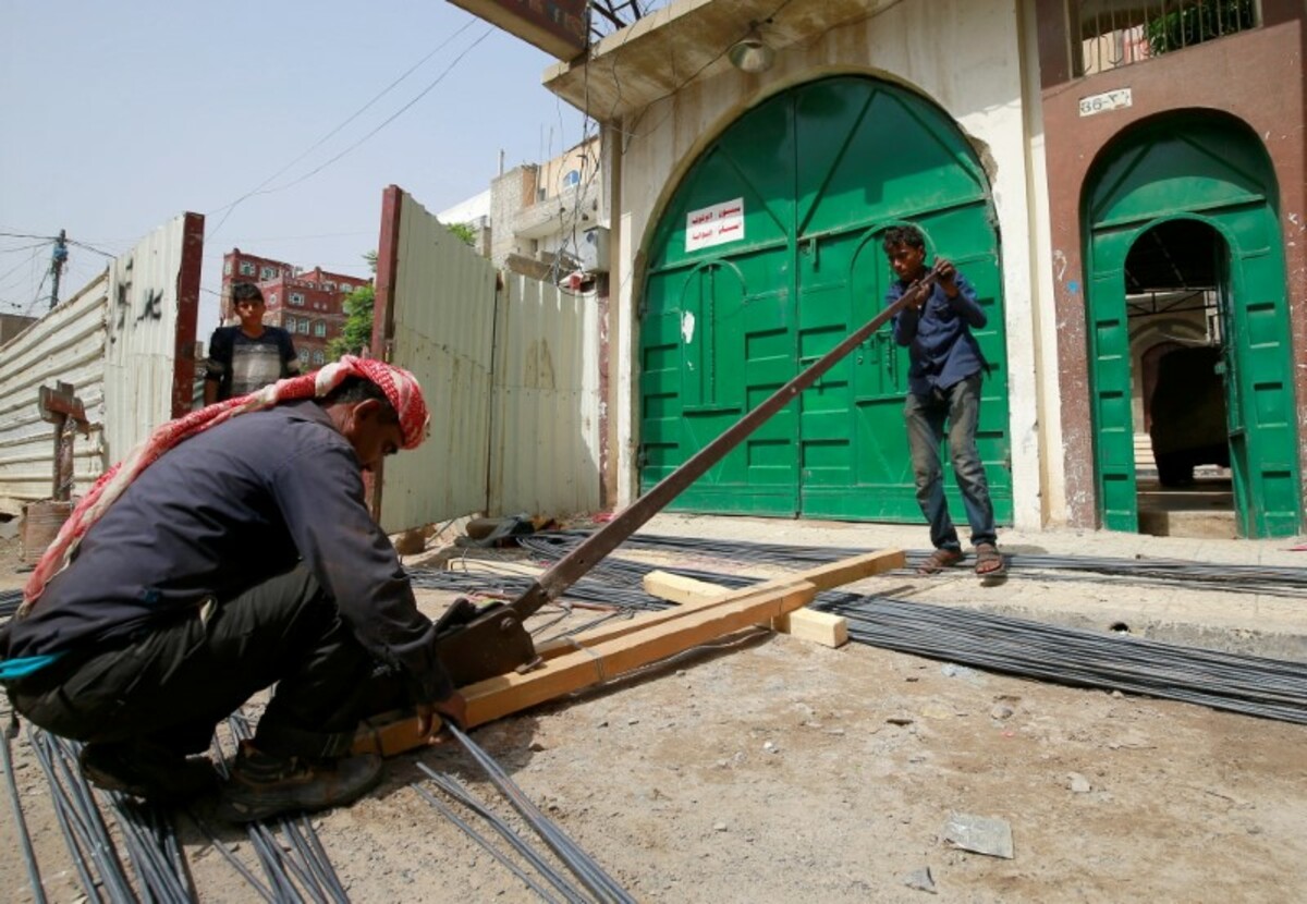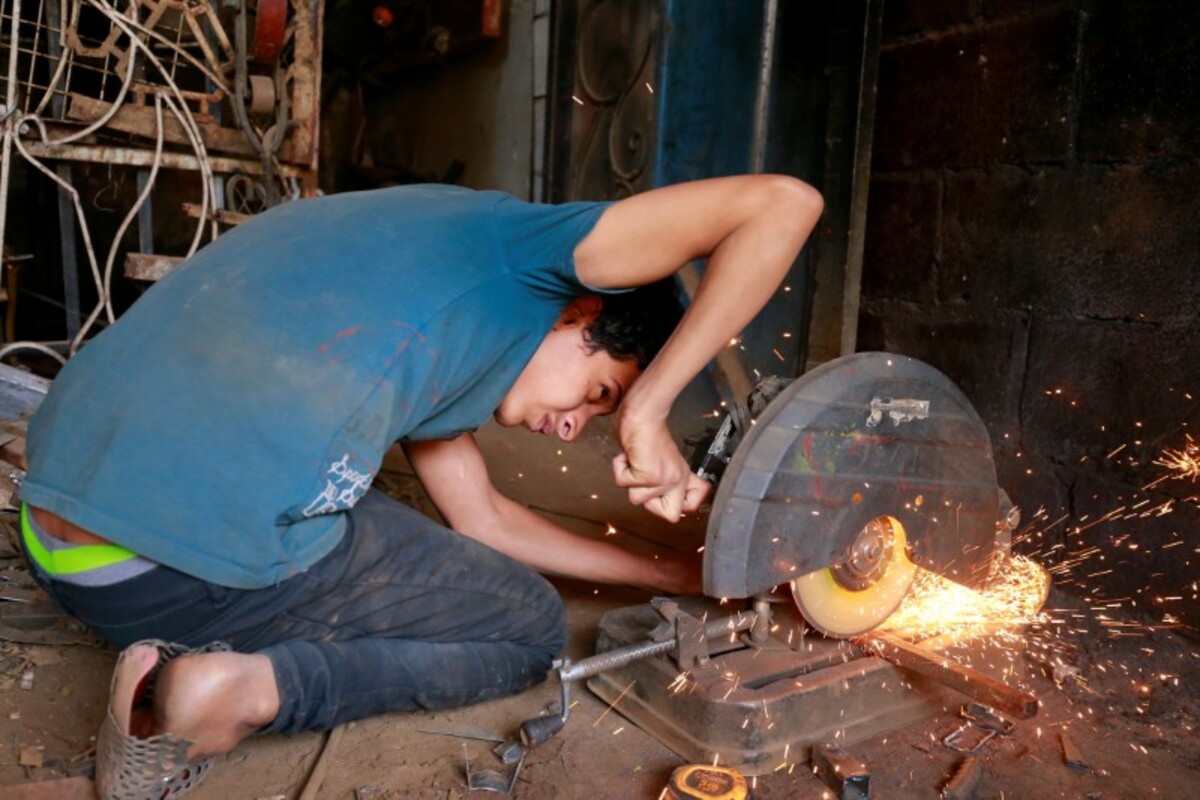 Elsewhere in the capital Abdo Muhammad Jamales, also 15 and clad in sandals and a shirt, cuts long steel rebars in the street for use in concrete structures.