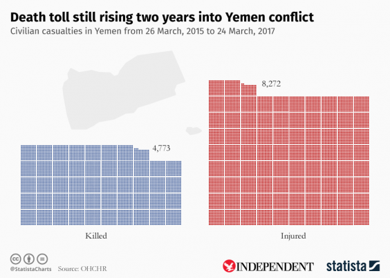 In the same period, a second chart indicated that 4,773 civilians have been killed and 8,272 injured. Both were compiled by Statista.