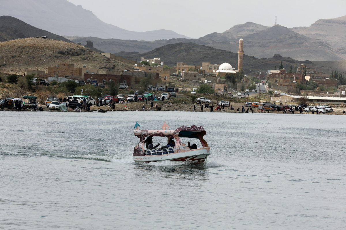 Jet skis and small boats ply the water. Children scream and shout with joy as they jump in and out of the lake, a one-hour car journey from Sanaa.