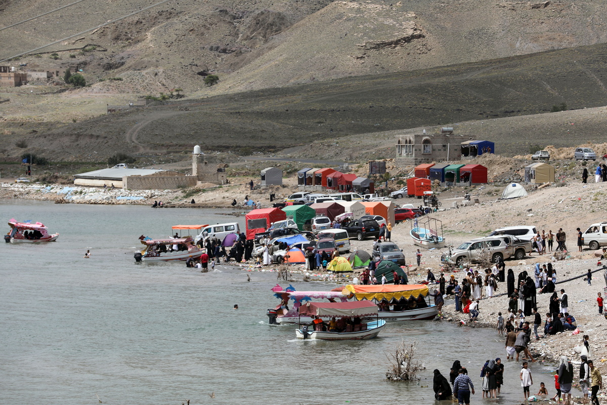 Yemen, with a semi-arid climate and seasonal rains, was already a severely water-stressed country even before war displaced millions and fuel shortages reduced underground water pumping. It relies on dams, some from ancient time, to store rain for later use. Some of those dams have become popular meeting places where families can relax.