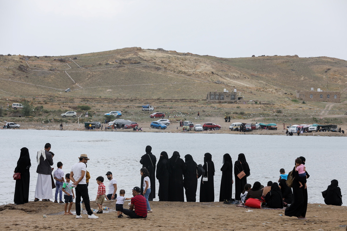 A countryside dam outside the Yemeni capital Sanaa provides the city's residents with a rare distraction from the six-year civil war that has left many facing poverty and hunger.