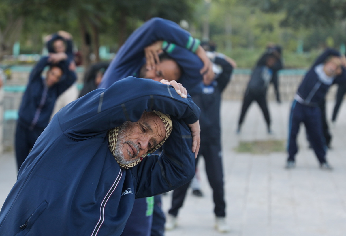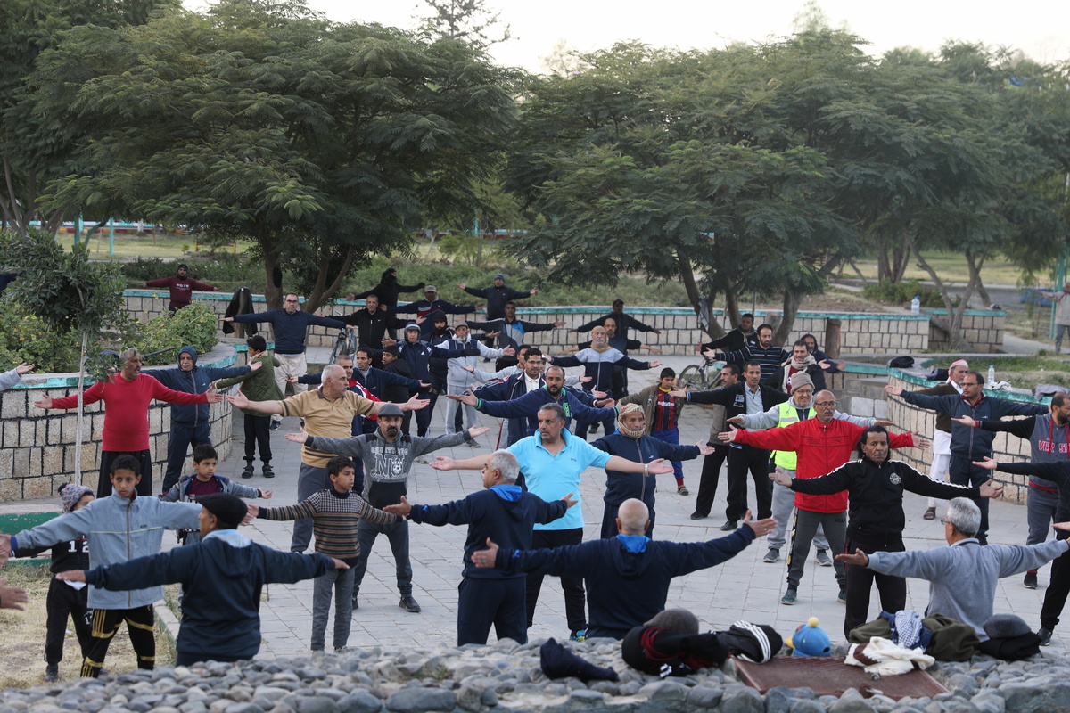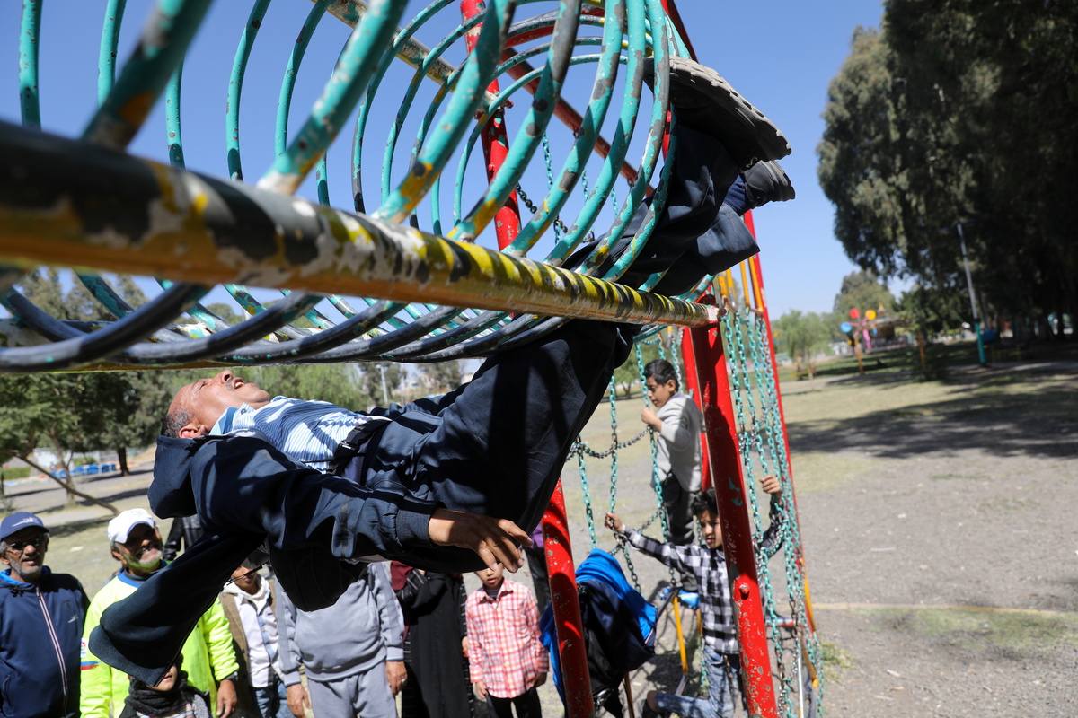 After dawn prayers Hatim Ali Hadi dons his tracksuit and heads to a park in the Yemeni capital Sanaa for group exercise sessions which help take people's minds off the problems caused by the war going on around them.