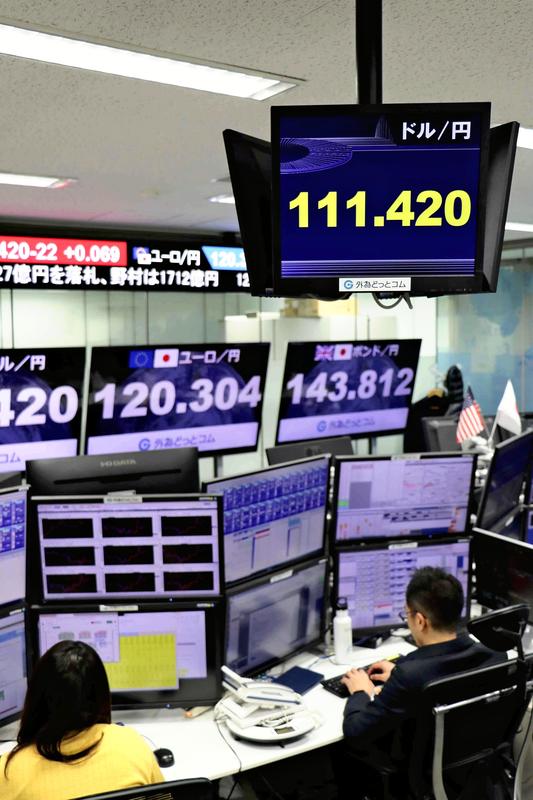 A monitor at a financial institution in Minato Ward, Tokyo, shows the yen at the 111 yen to the dollar level on Thursday.